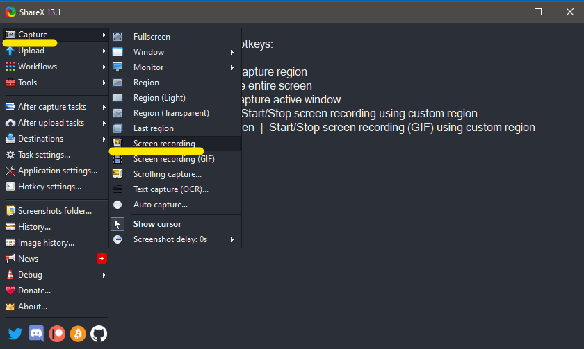 1. Download ShareX from https://getsharex.com/, install, and run the program. The installation or the initial setup will ask you to download “ffmpeg.exe”. Allow it download.